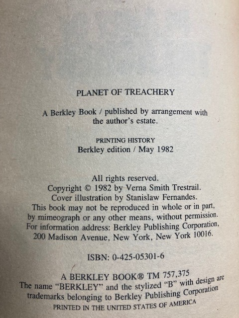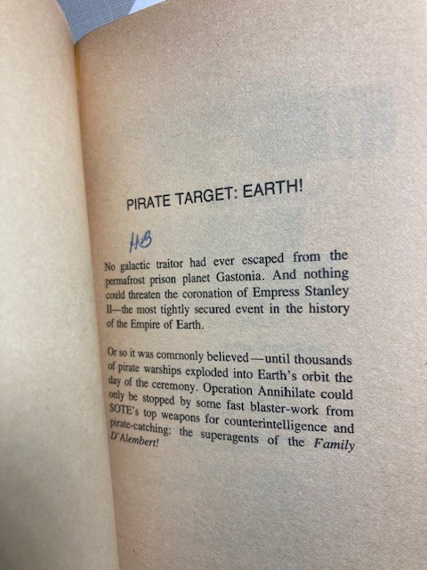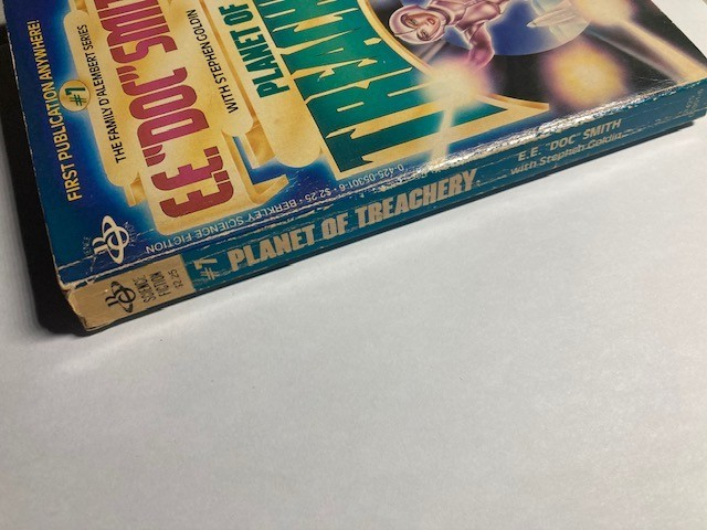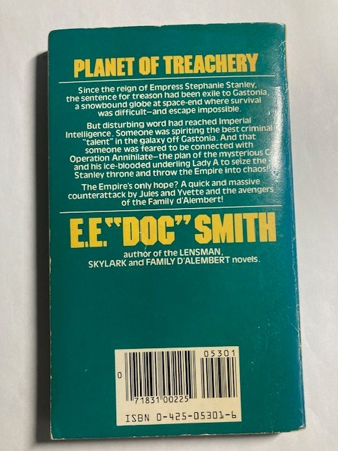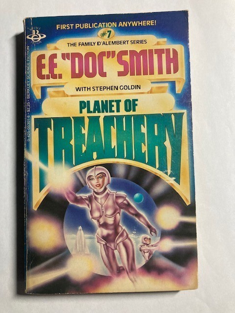 Planet of Treachery (Family d'Alembert 7) Stephen Goldin E.E. Doc Smith PB Good over all condition. Some cover wear. One small area of writing on inside as shown. Please refer to images.