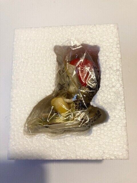 This adorable glazed china ornament is beautifully hand-painted