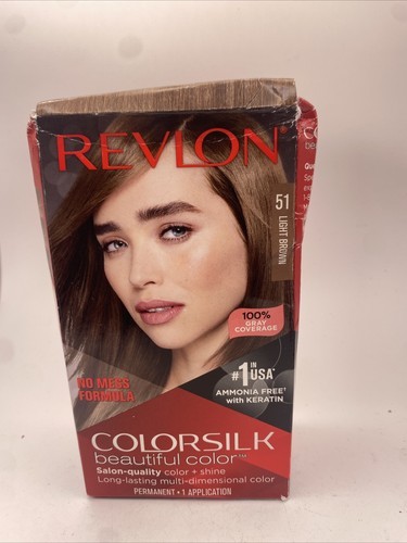 Revlon ColorSilk Permanent Hair Dye #51 Light Brown 4.4 Fl Oz Ammonia Free. Package may contain shelf ware, retail stickers or cosmetic damages