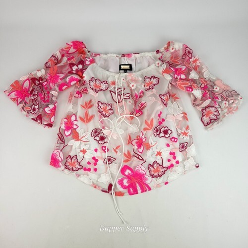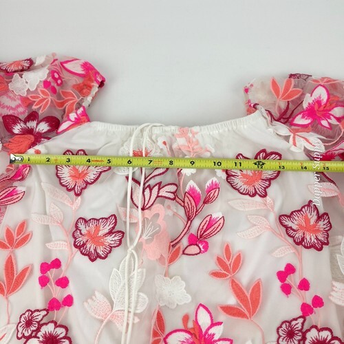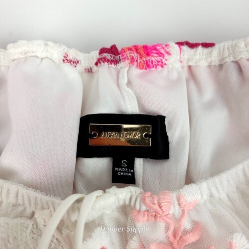 Alexia Admor White Floral Embroidered Boho Style Peasant Type Top Size Small