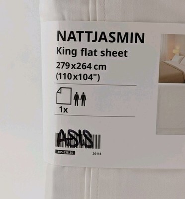 IKEA NATTJASMIN White King Flat Sheet 110x104" New