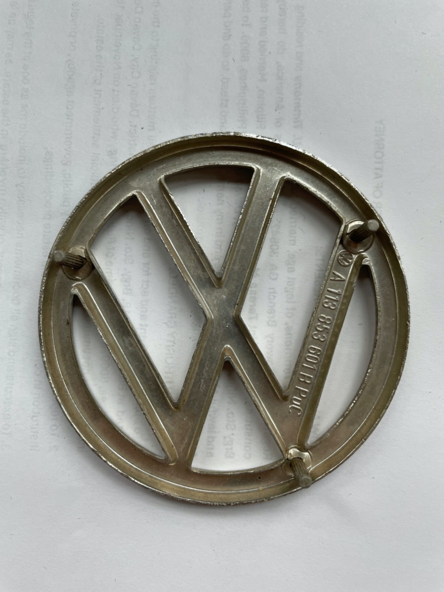 OE VW Bug Beetle, Hood Logo Emblem Badge 113 853 601B 3 1/4" Tall