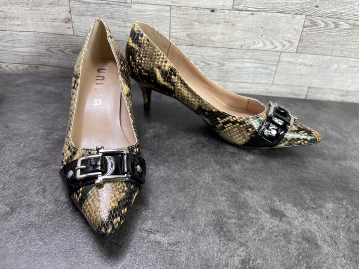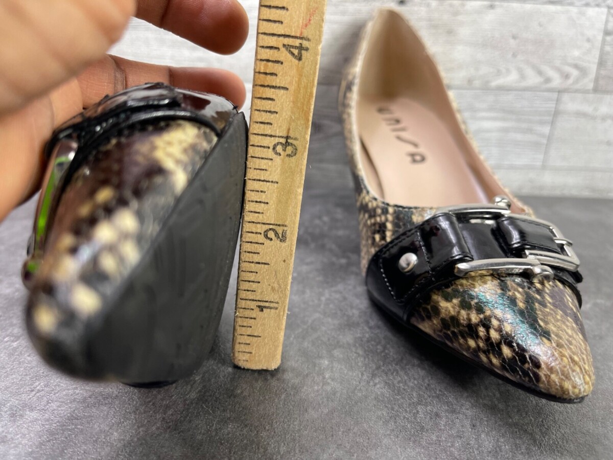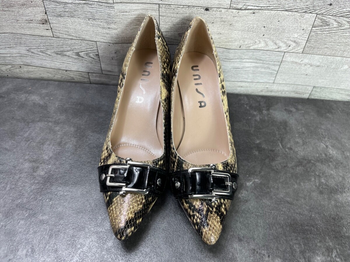 Unisa Heels Women 7.5M unCarream Shoes Black Brown Patent Snake Kitten Pumps