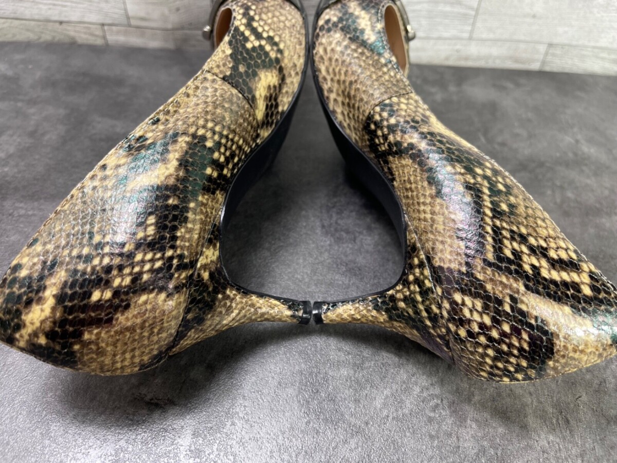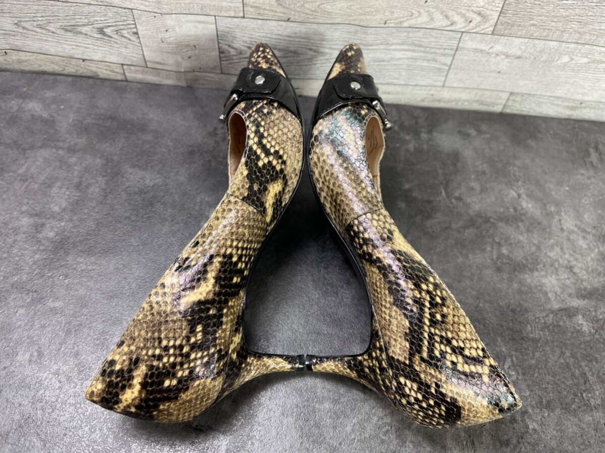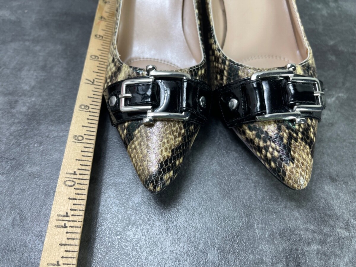 Unisa Heels Women 7.5M unCarream Shoes Black Brown Patent Snake Kitten Pumps