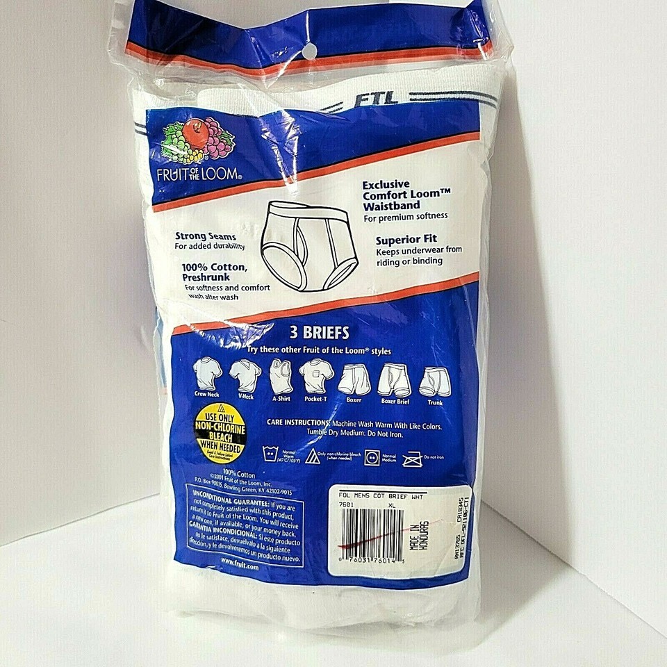 Vtg 2001 FTL on Waistband Sz XL 42 - 44 NEW 3 Pr Fruit of the Loom Mens Briefs