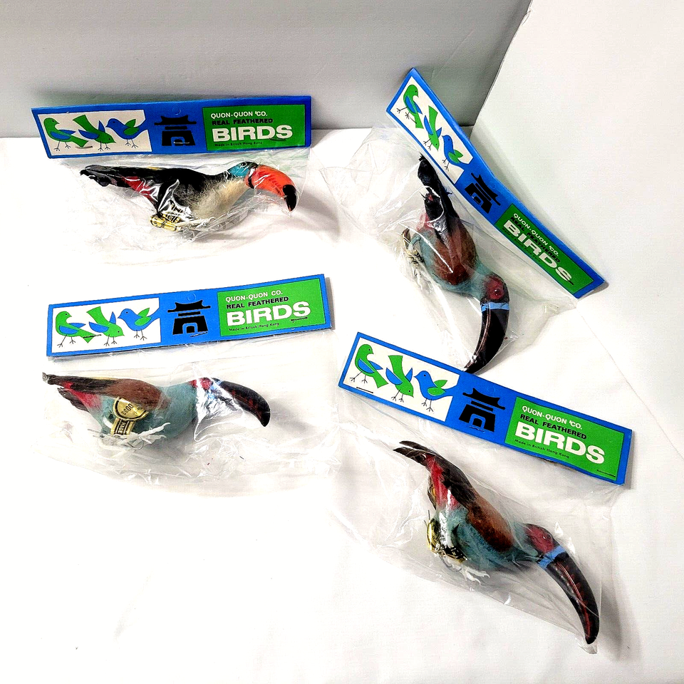 Wow, 4 New in Package Vintage 'Real Feathered Birds' made in British Hong Kong!