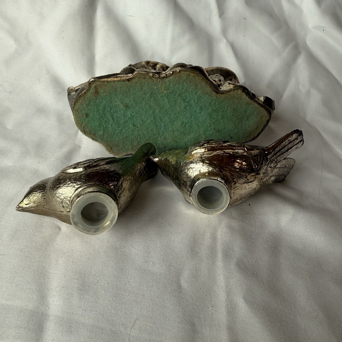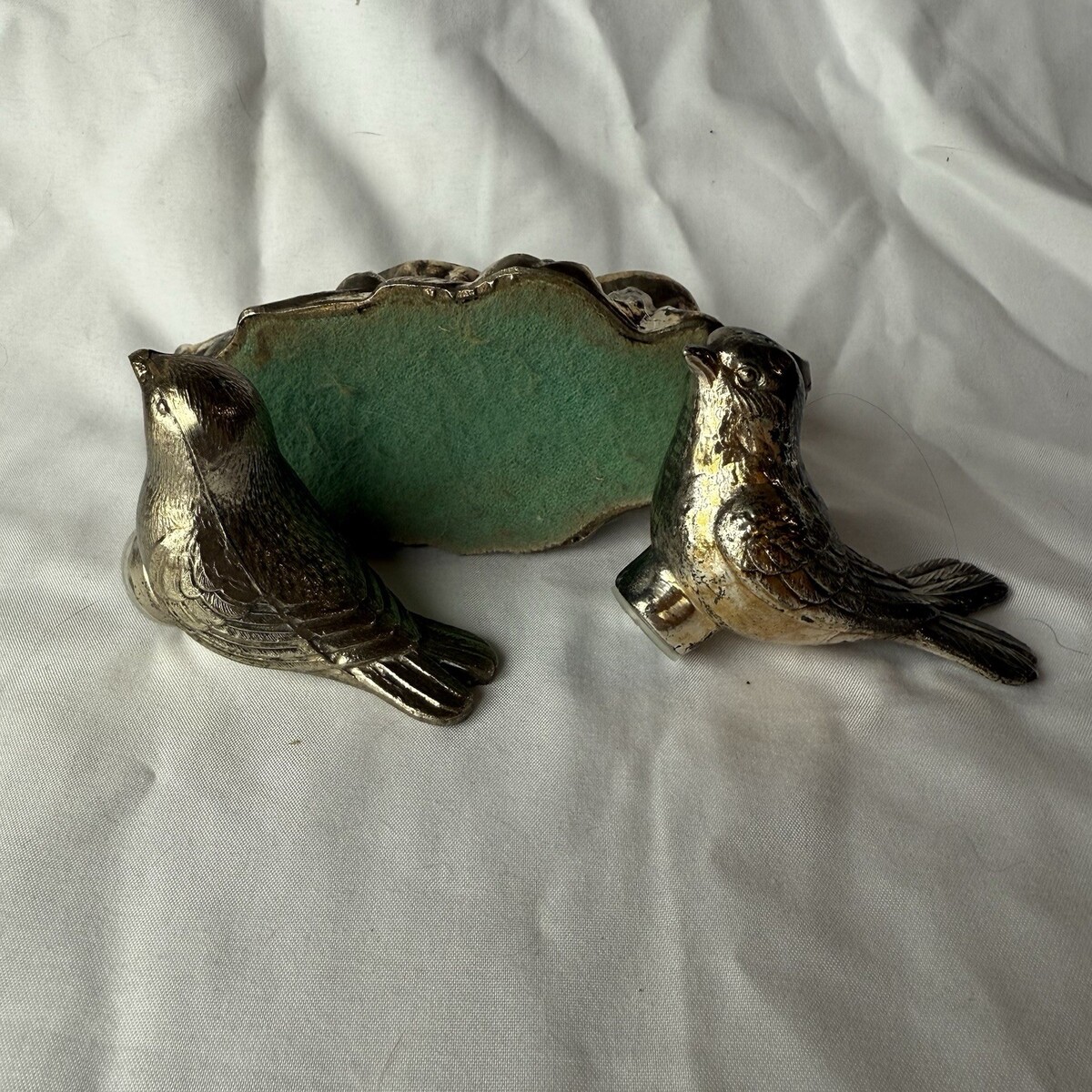 Vintage Metal Bird Salt & Pepper Shakers Set on Floral Base Home Decor