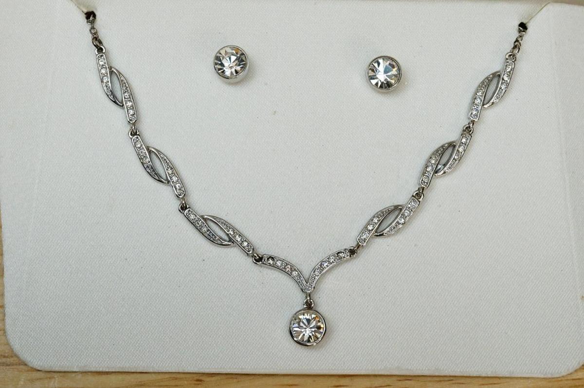 Vintage Costume Jewelry Charter Club Bridal Clear Rhinestone Necklace & Earrings