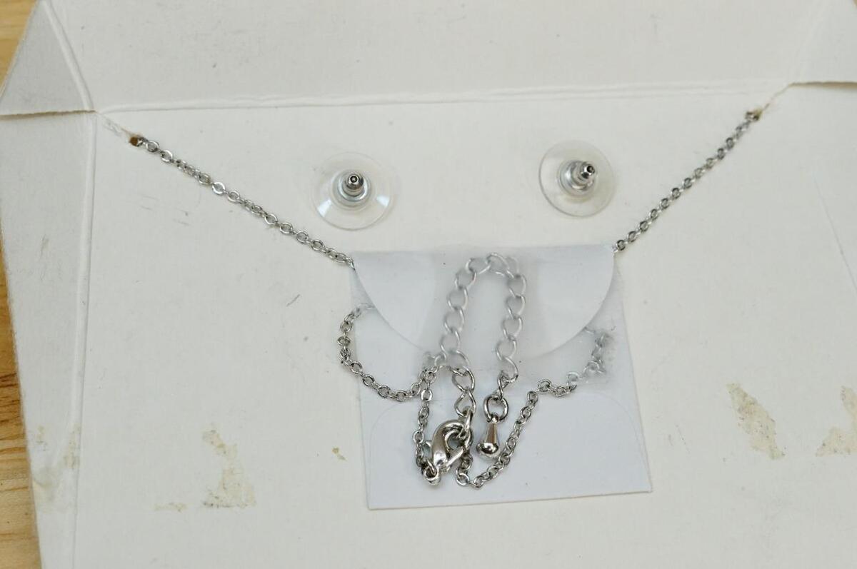 Vintage Costume Jewelry Charter Club Bridal Clear Rhinestone Necklace Earrings. Silver tone metal. Bright clear rhinestones. Earrings are pierced. 7mm in diameter. The necklace is 16" long. No smoke or pet odors. Present on the original sales card. Never worn.