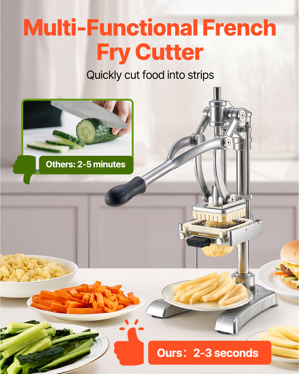 VEVOR Manual French Fry Cutter 3Blades+Juicing Blade Stainless Steel for Kitchen