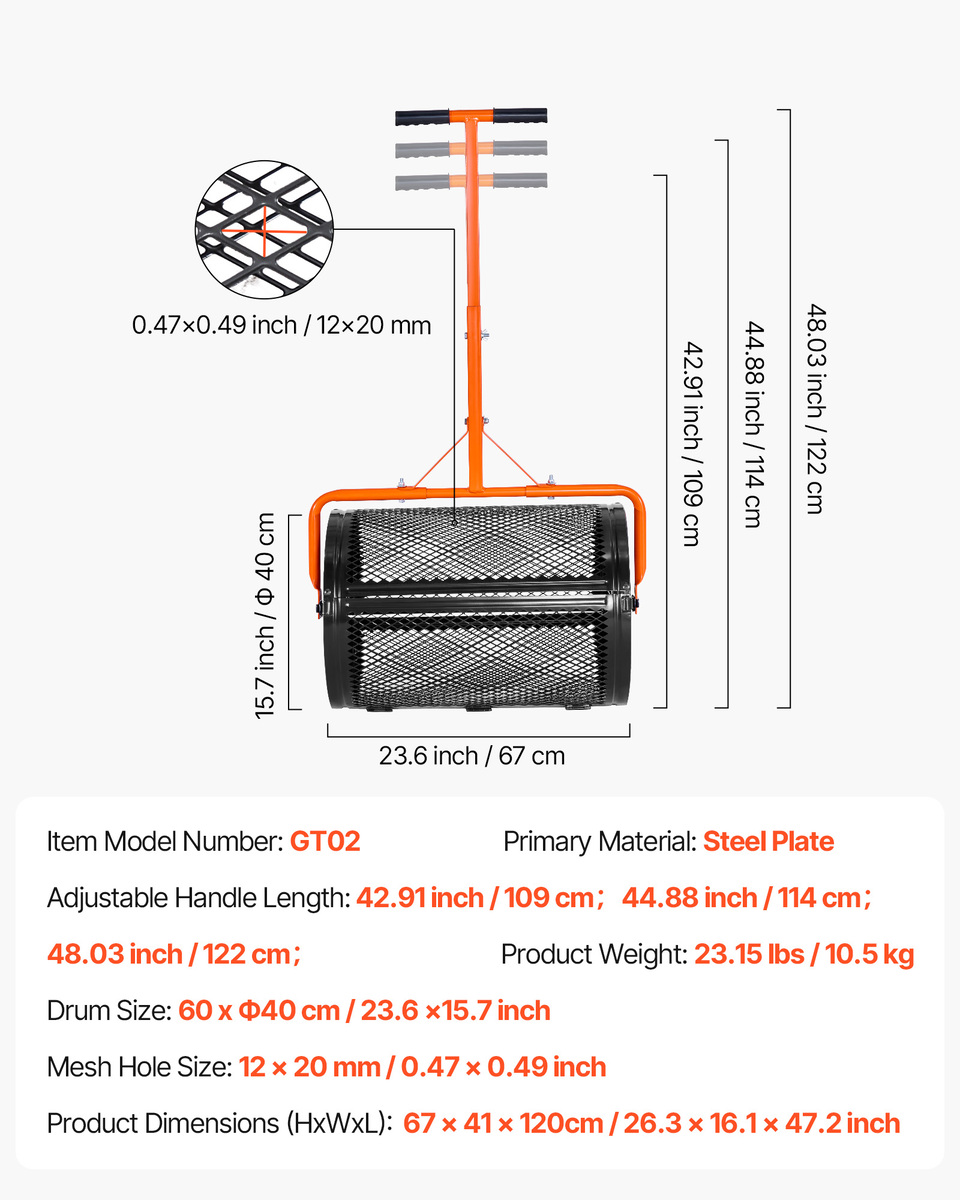 Even and Precise Spreading: With its 12 20 mm (0.47 0.49 inch) mesh, the peat moss spreader provides consistent and accurate spreading. Whether you're applying fertilizer, seed, or other materials, every part of your yard receives equal coverage.