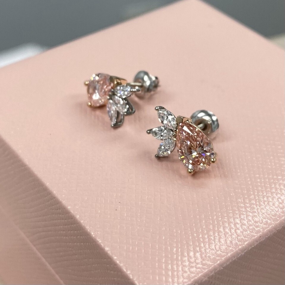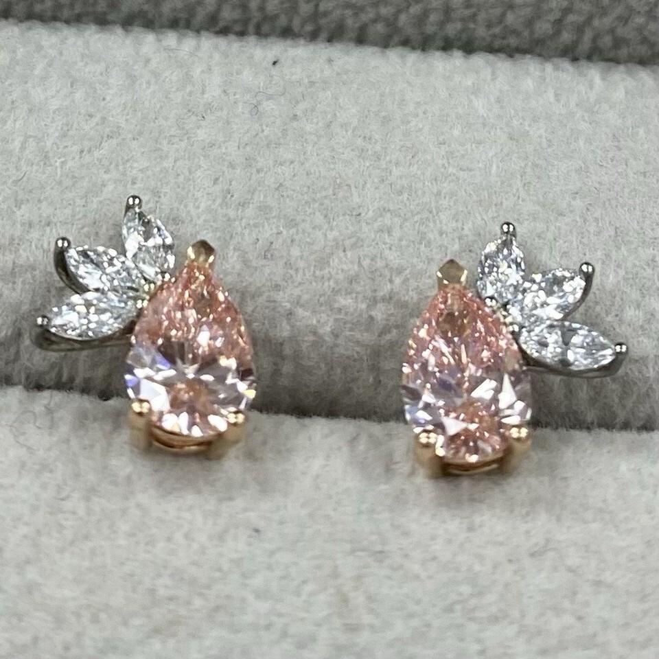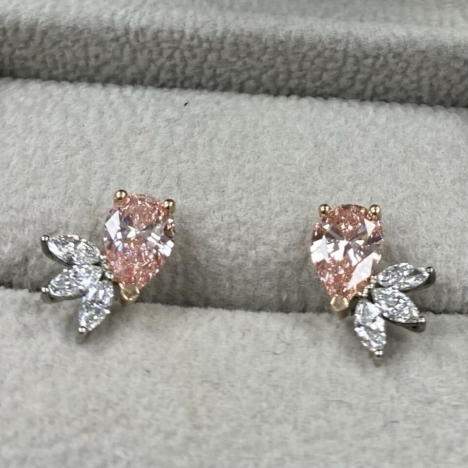 Authenticity Guarantee IGI 2.50 CT Pear Lab Grown Pink Diamond Stud Earrings...