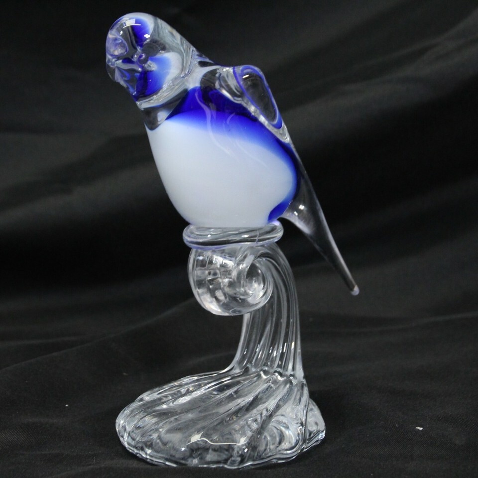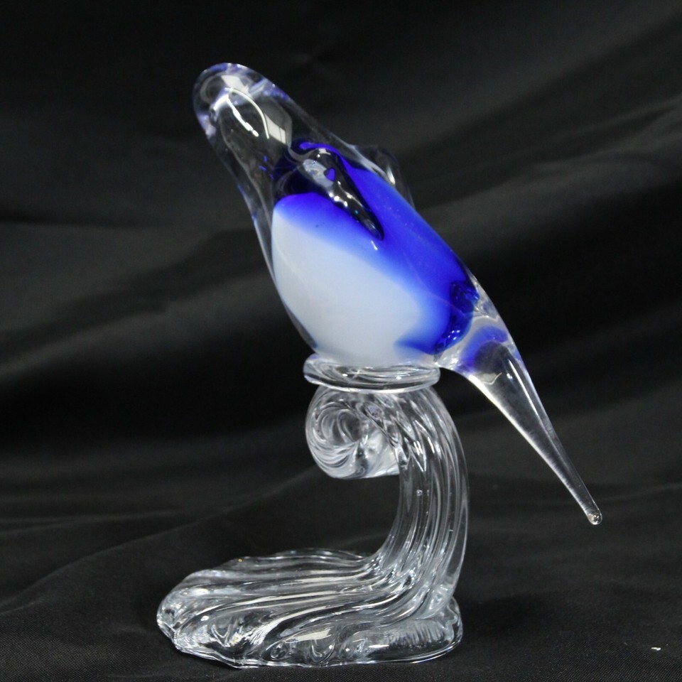 Art Glass Murano Handblown Bird Clear and Shades of Blue Figurine Italy