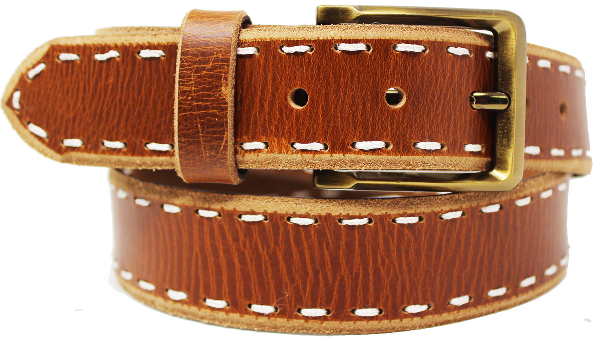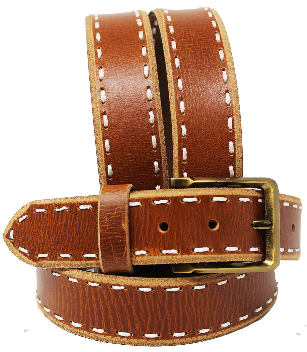 Men's Casual Jean Full-Grain Tan Brown Leather Belt 26AB16