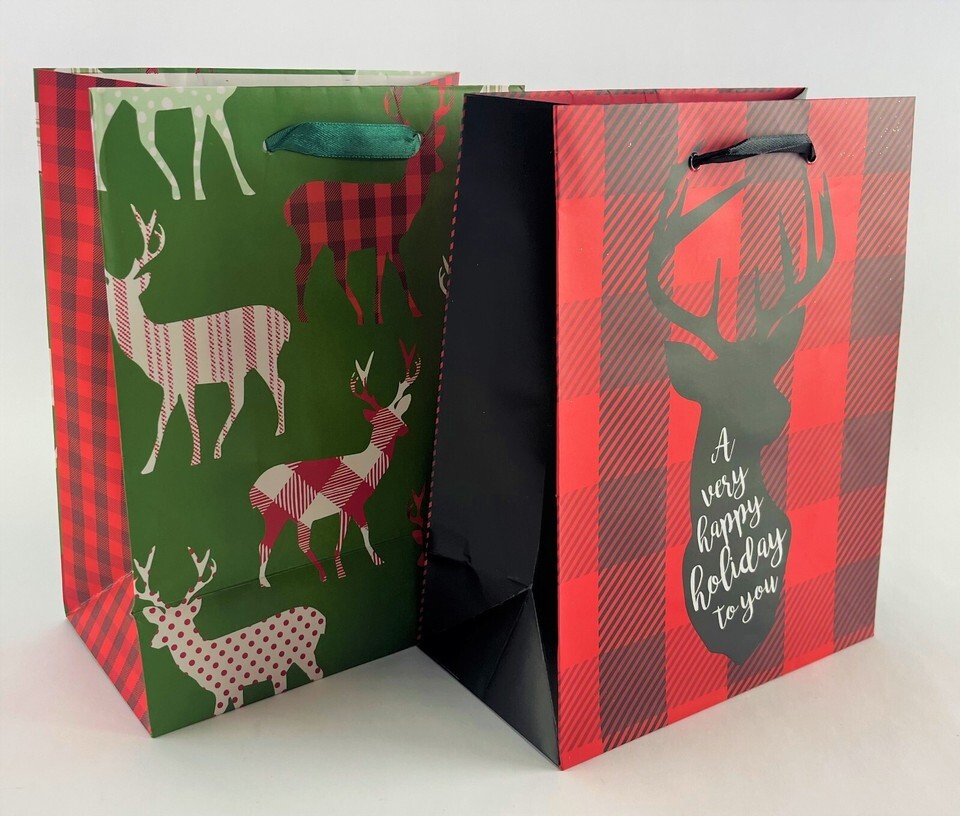 Stock up in style this season with classic Christmas gift bags in bulk. Cute and classic Christmas designs including Santa Claus, Snowman, Wreath, Reindeer, and lots of cute plaid and striped prints to coordinate with. Be prepared for holiday work parties, teacher gifts, white elephant exchanges, and last-minute raids of your holiday gift closet.