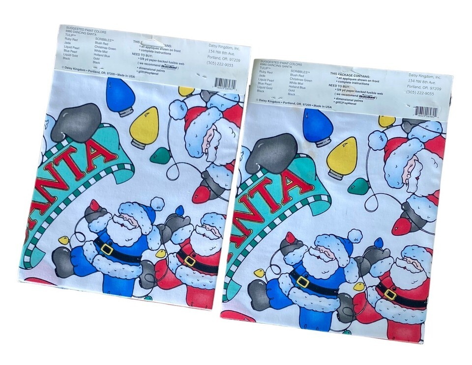 Daisy Kingdom Fabric Appliqué Dancing Santa No Sew Vintage Lot Of 2 Damage