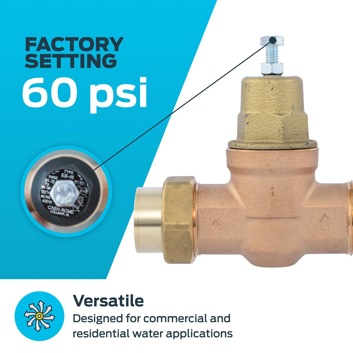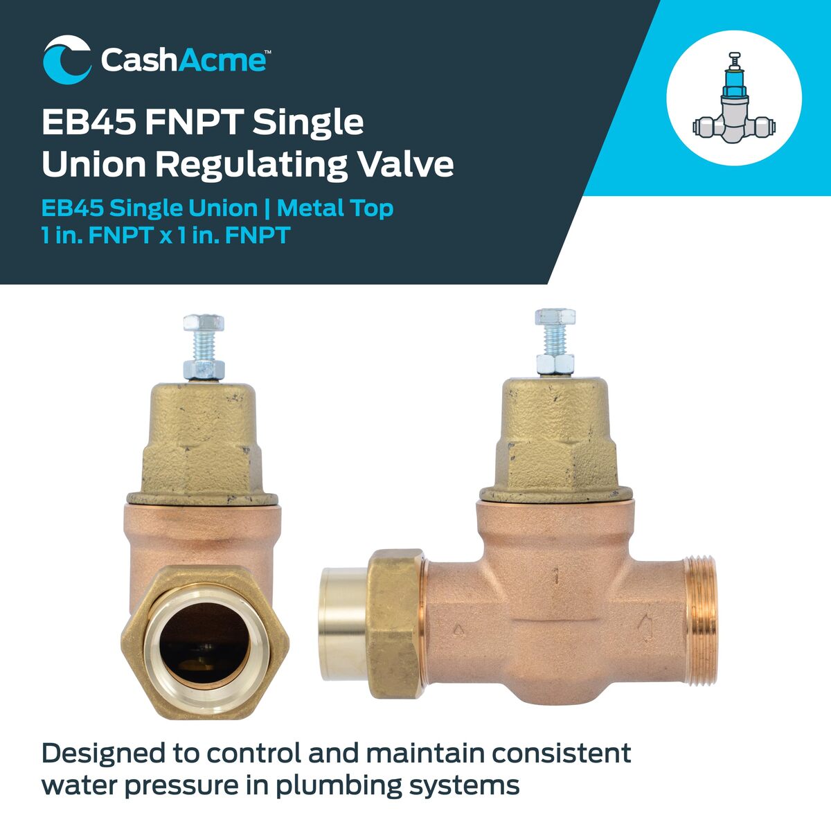 Cash Acme 3/4 Inch EB45 Single Union Pressure Regulating Valve (PRV), 45 PSI, 23