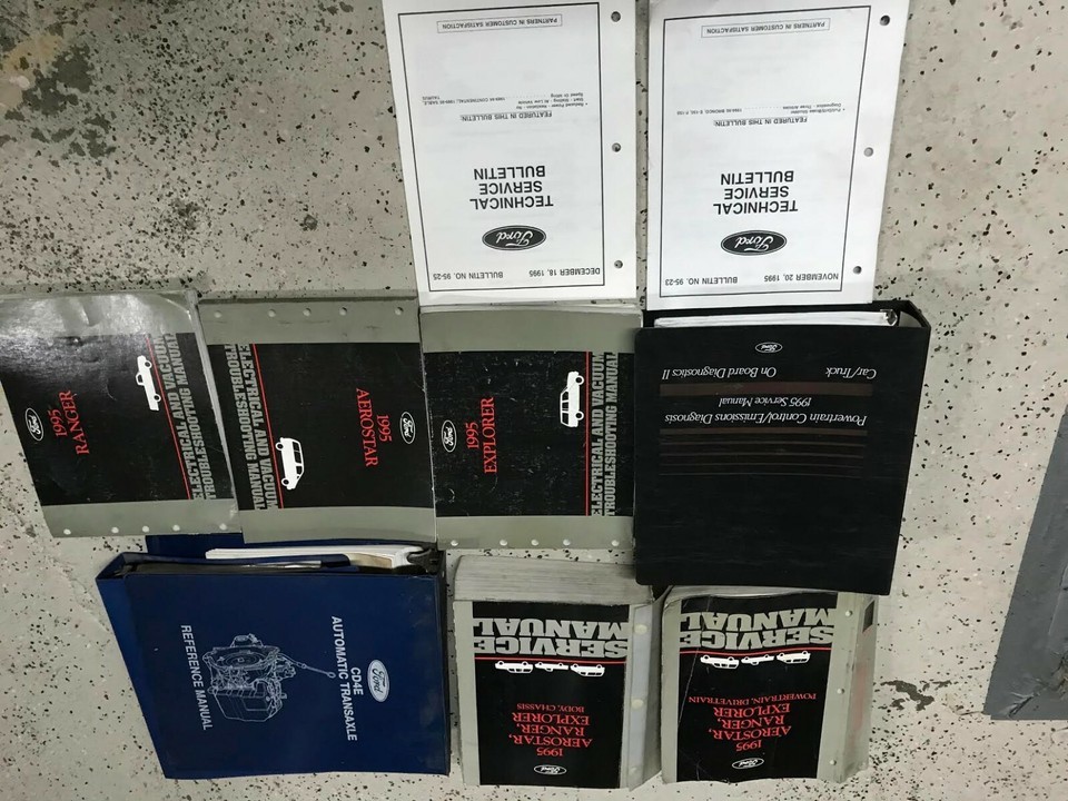 1995 Ford AEROSTAR, RANGER, EXPLORER 2 VOLUME SERVICE MANUAL SET, ELECTRICAL WIRING DIAGRAM MANUALS, POWERTRAIN CONTROL EMISSION DIAGNOSIS MANUAL, TECHNICAL SERVICE BULLETINS, TRANSMISSION MANUAL