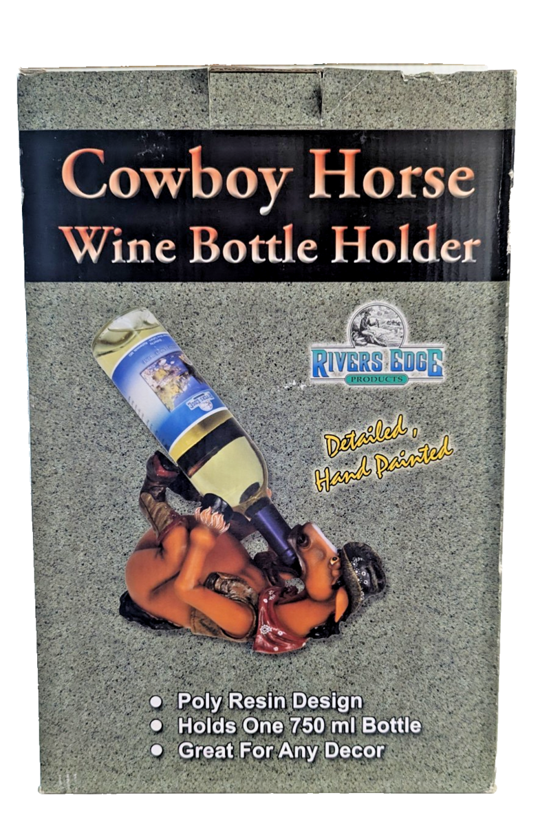 Rivers Edge Cowboy Horse Wine Bottle Holder Poly Resin Hand Painted Gift NEW