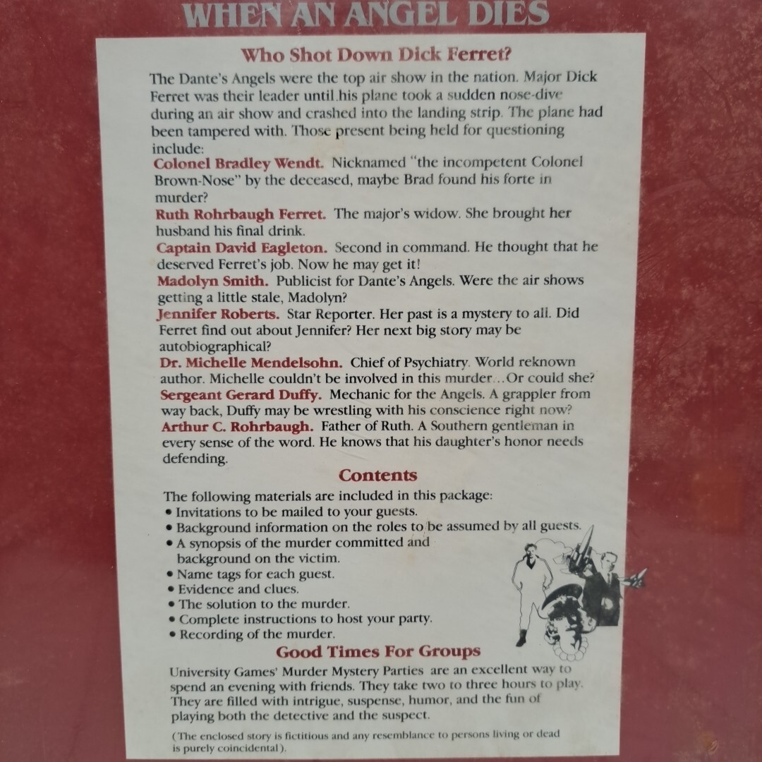 Murder Mystery Party When An Angel Dies Game Host Kit (6-8 Players) New & Sealed