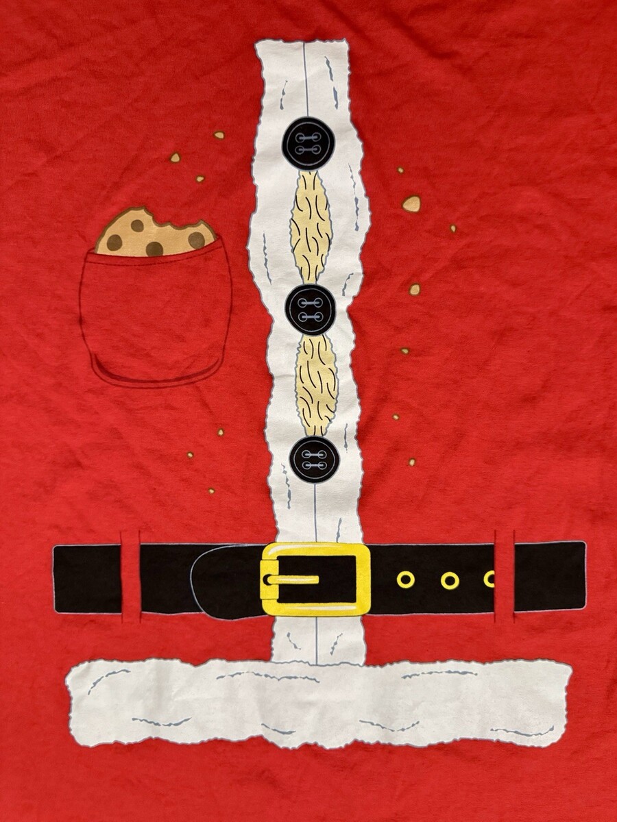 Santa Claus Suit Funny Christmas T Shirt Hairy Chest Cookie Gildan X-Large Red
