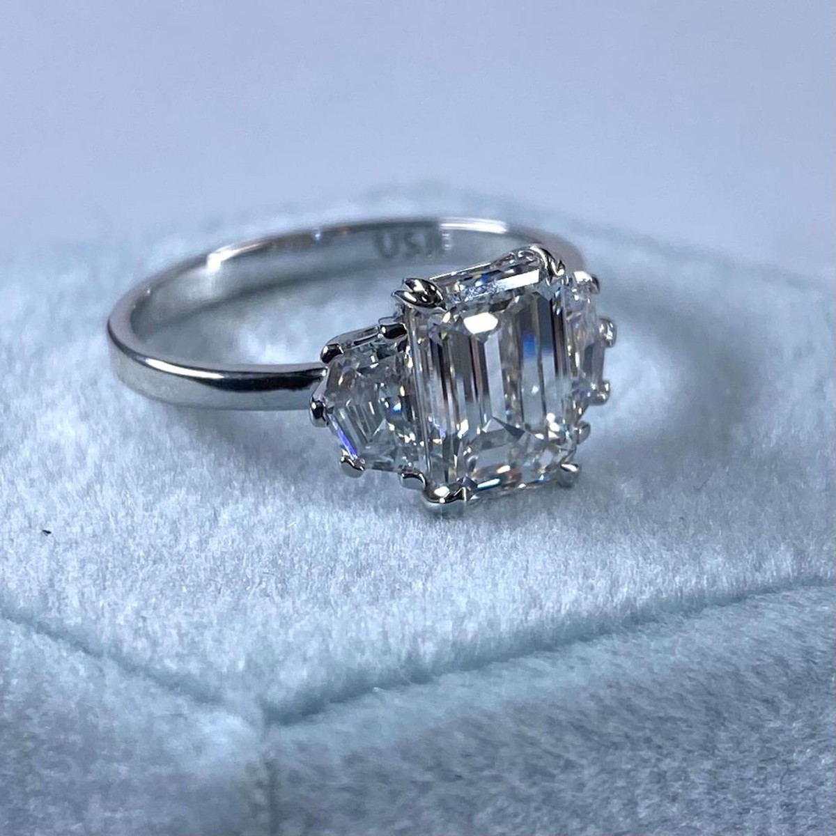 3 Stone Lab Grown Emerald Diamond Ring IGI and 43 similar items