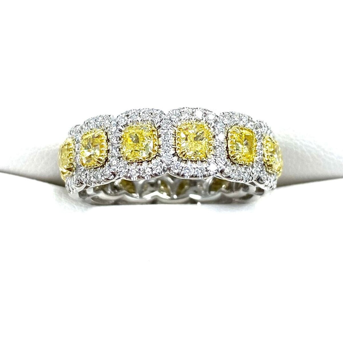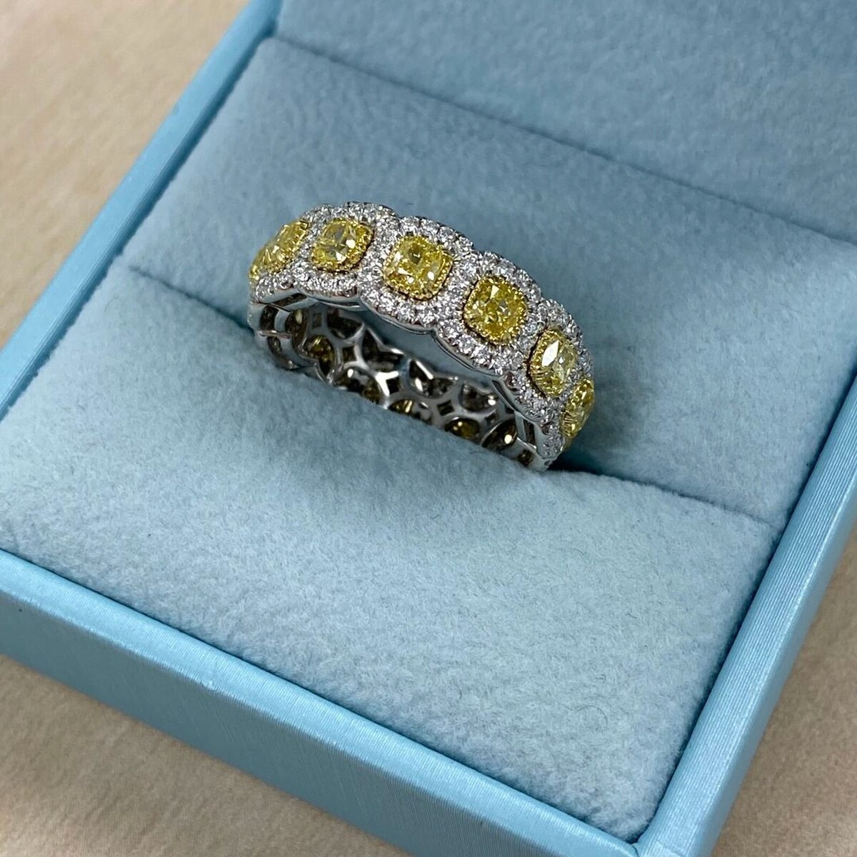 Eternity 4.02 TCW Fancy Fancy Light Yellow Cushion Diamond 14K Body Band