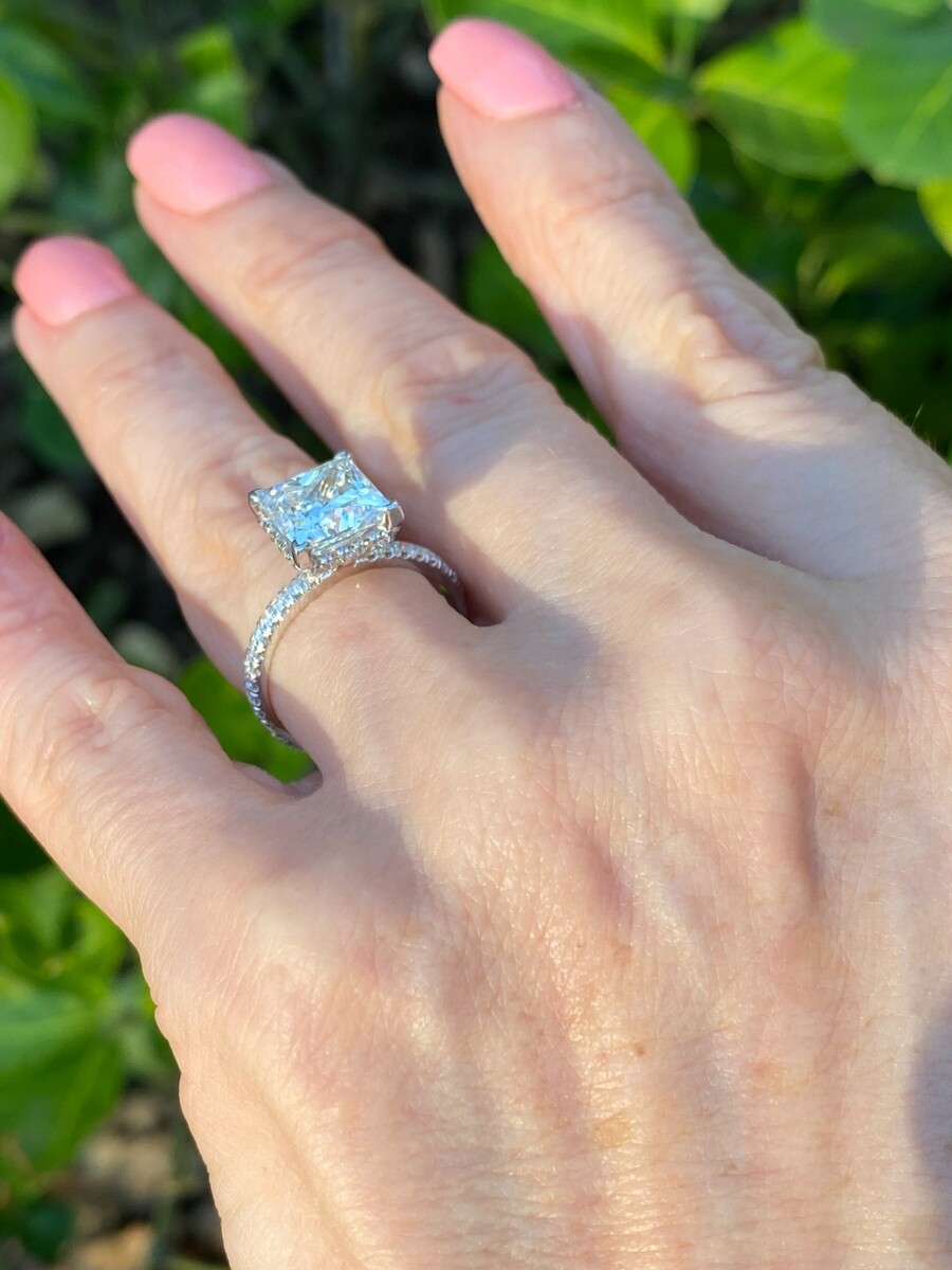GIA 3.03 CT D-VS1 Radiant Coupe Labo Grown Anneau Fiancailles Diamant 18k or