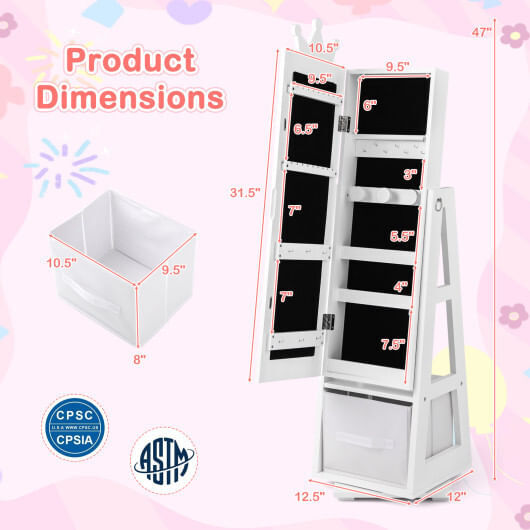 Kids Jewelry Armoire Cabinet Large Storage Capacity Swivel Base |