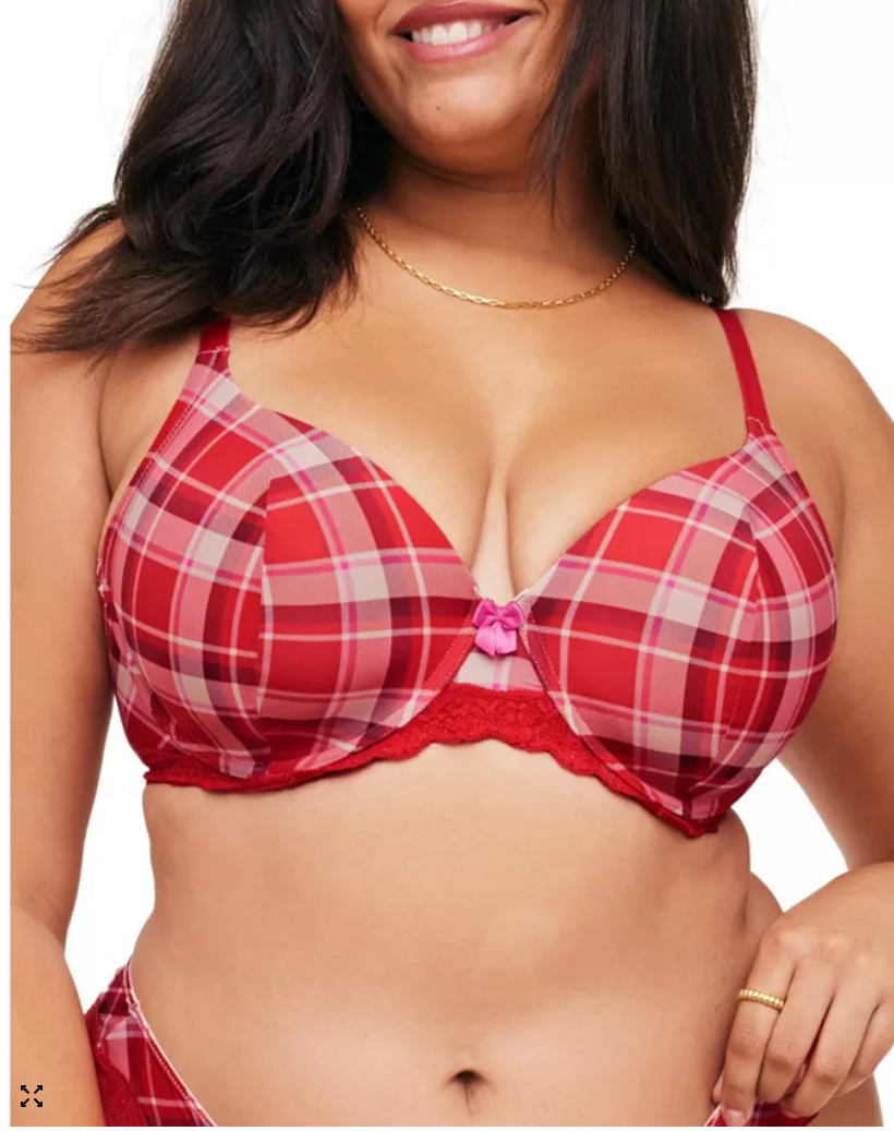 Adore Me Womens Nare Contour Full Coverage Bra - Plaid Red, 38G