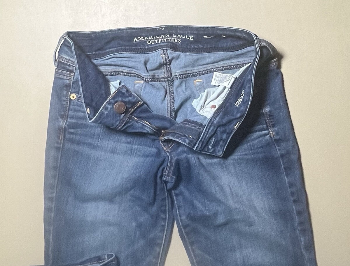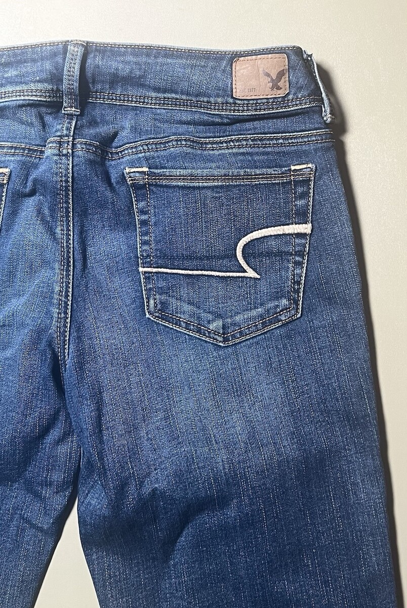 The American Eagle Outfitters Kickboot Jeans for women in size 8 Blue are a stylish and versatile addition to any wardrobe. With a flattering bootcut style and a comfortable regular fit, these jeans are perfect for everyday wear. The American Eagle brand guarantees quality and durability, making these jeans a long-lasting choice for any fashion-conscious woman.