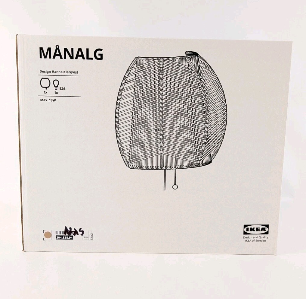 IKEA MÅNALG Wall Lamp Sedge Handmade Natural Material 11"x14" W/Light Bulb New