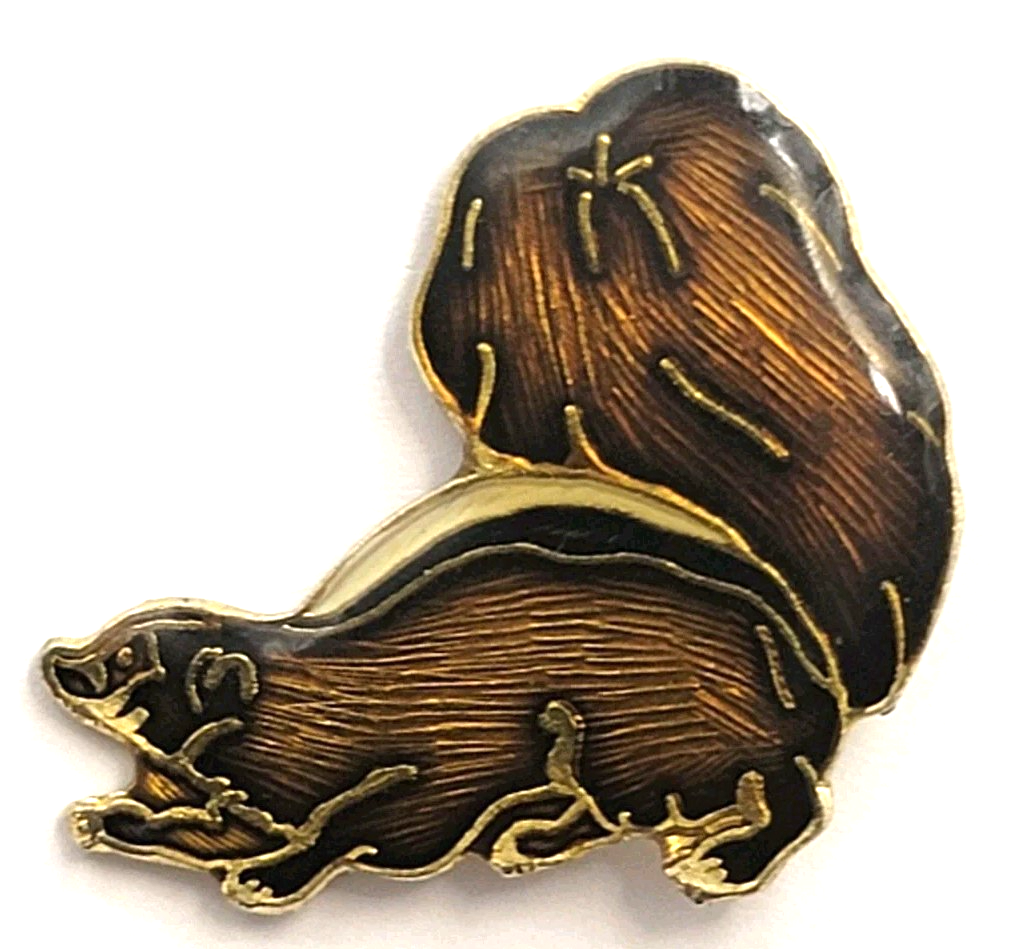 Brown Squirrel Bushy Tail Gold Tone Enamel Pin