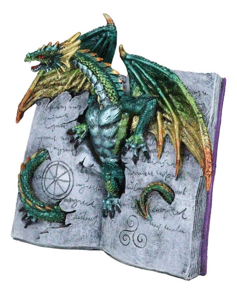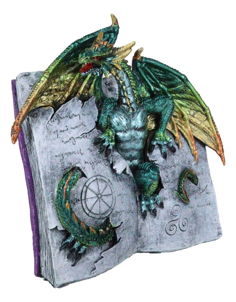 Guardian Of Bibliography Gold Green Dragon Emerging Out Of Spell Book Figurine