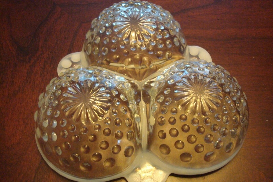 Anchor Hocking Hobnail Relish Dish Moonstone French Opalescent Divided in 3