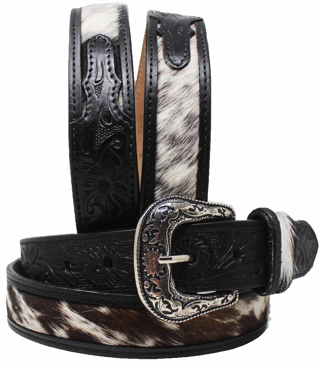 Men Women Western 1-1/2" Wide Floral Tooled Full-Grain Hairon Leather Belt