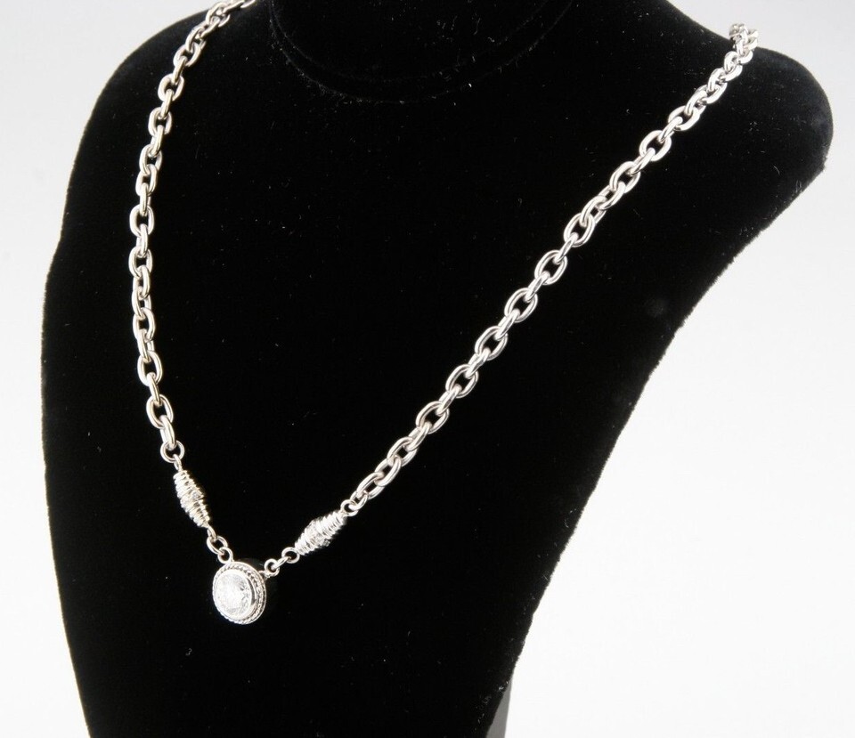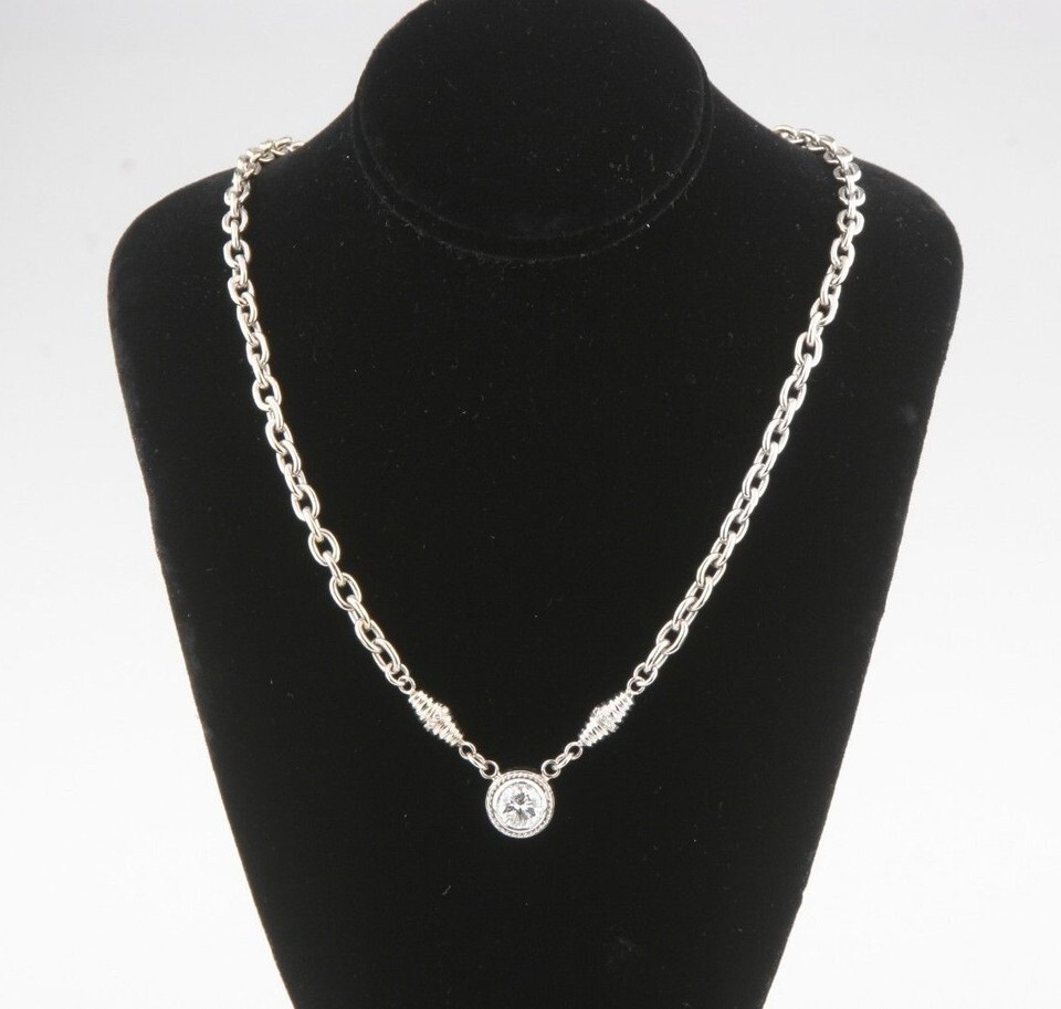 Gorgeous, Unique 18K White Gold Chain Diamond Solitaire Pendant Necklace TDW = 1.00 ct