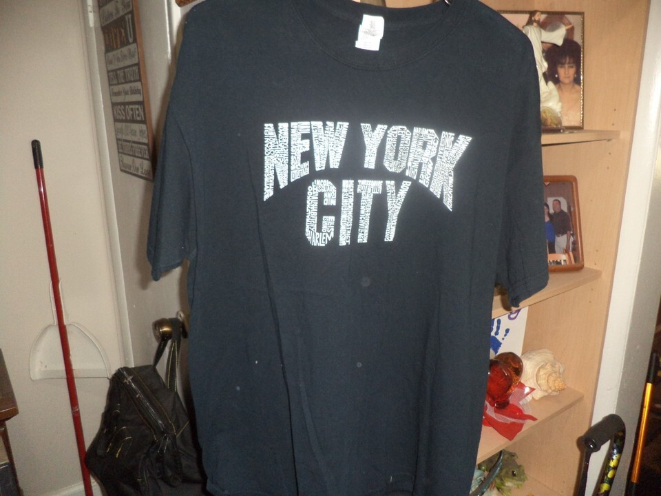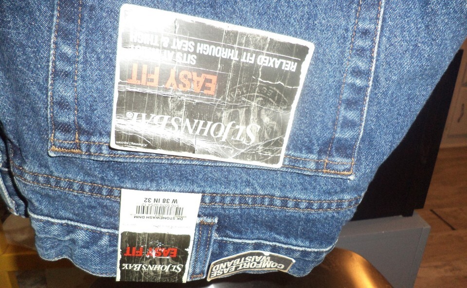 Denim Jeans St Johns Bay size 38/32, 2 Pair of Navy Blue Cintas Comfort Flex work Pants size 40/32, pair grey Dickies shorts size 34, Multi colored Knightsbridge shirt w/ blue size XL, Black New York City Gildan Tee shirt size XL, and a burgundy Puritan Shirt size 2X. Red Cap navy Blue pants new size 40/32 65 poly 35 cotton. All clothes are sold together for one price.