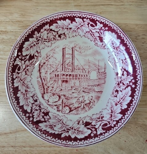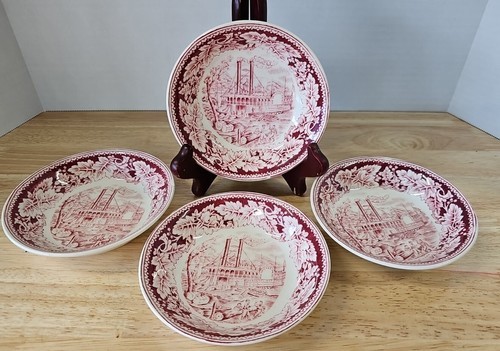 4 Currier & Ives Red by Homer Laughlin 5"Fruit Sauce Bowls On The Mississippi