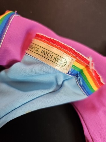 UP FOR SALE: Cabbage Patch Kids actionware outfit. 1986 Original Appalachìan Artworks, Inc. Purple and blue with the rainbow striping.