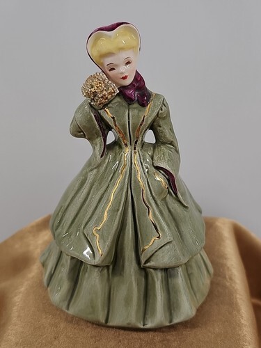 UP FOR SALE: Vintage Florence Ceramics Irene Porcelain Figurine Green Dress Blonde Romantic Gone With The Wind Vibes