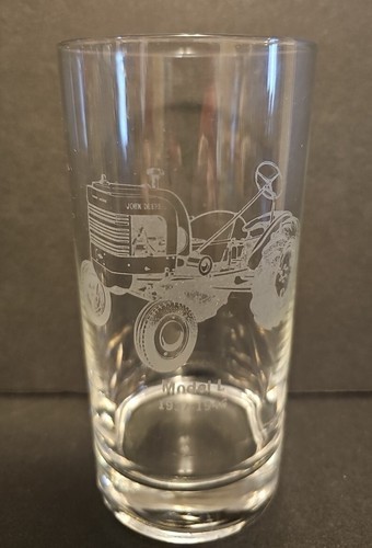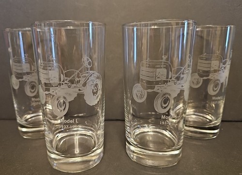 UP FOR SALE: John Deere Etched Drinking Water Glasses Model L Tractor 1937-1946 Set of 4 VTG