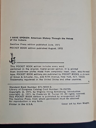 UP FOR SALE: I Have Spoken : American History Through the Voices of the Indians by Virginia I. Armstrong (1971, Trade Paperback)