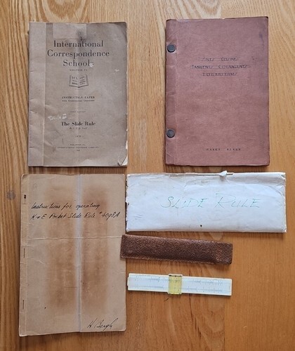 What an amazing lot! The slide rule, the original book that it came with and two other books. these all belonged to the same person.