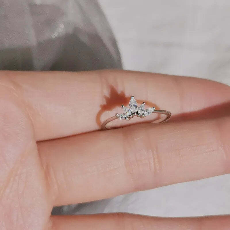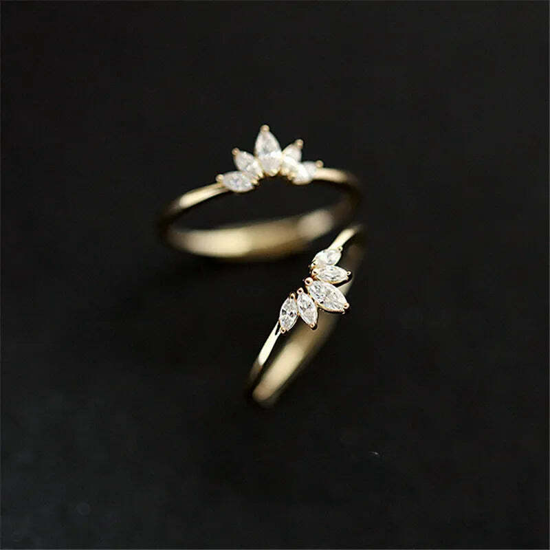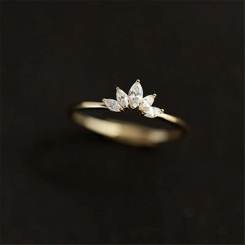 925 Sterling Silver Pavé Crystal Plating 14k Gold Simple Crown Ring Women Fashio