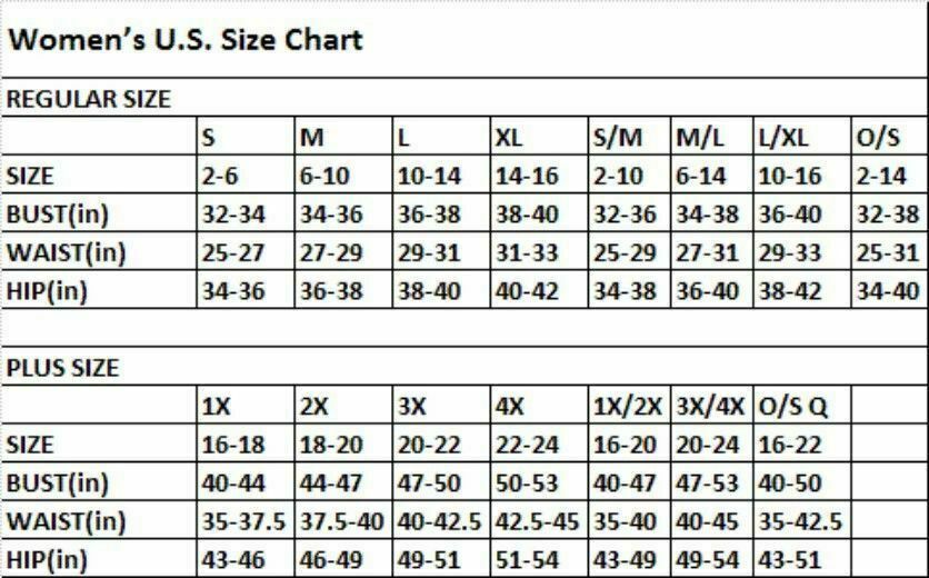 | Intimates & Sleep Size (Women's): |