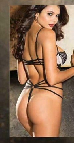 This teddy features a stunning mix of stretch mesh and lace with underwire cups, adjustable shoulder straps and comes with G string back, O RING detail