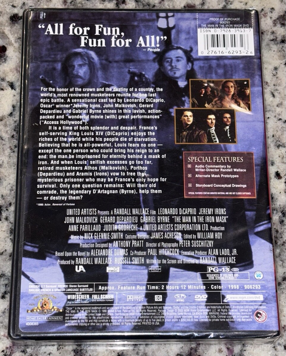 The Man in the Iron Mask [DVD] Jeremy Irons Widescreen Full Screen New Sealed