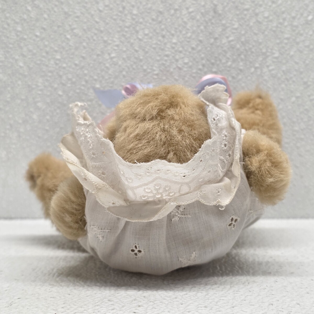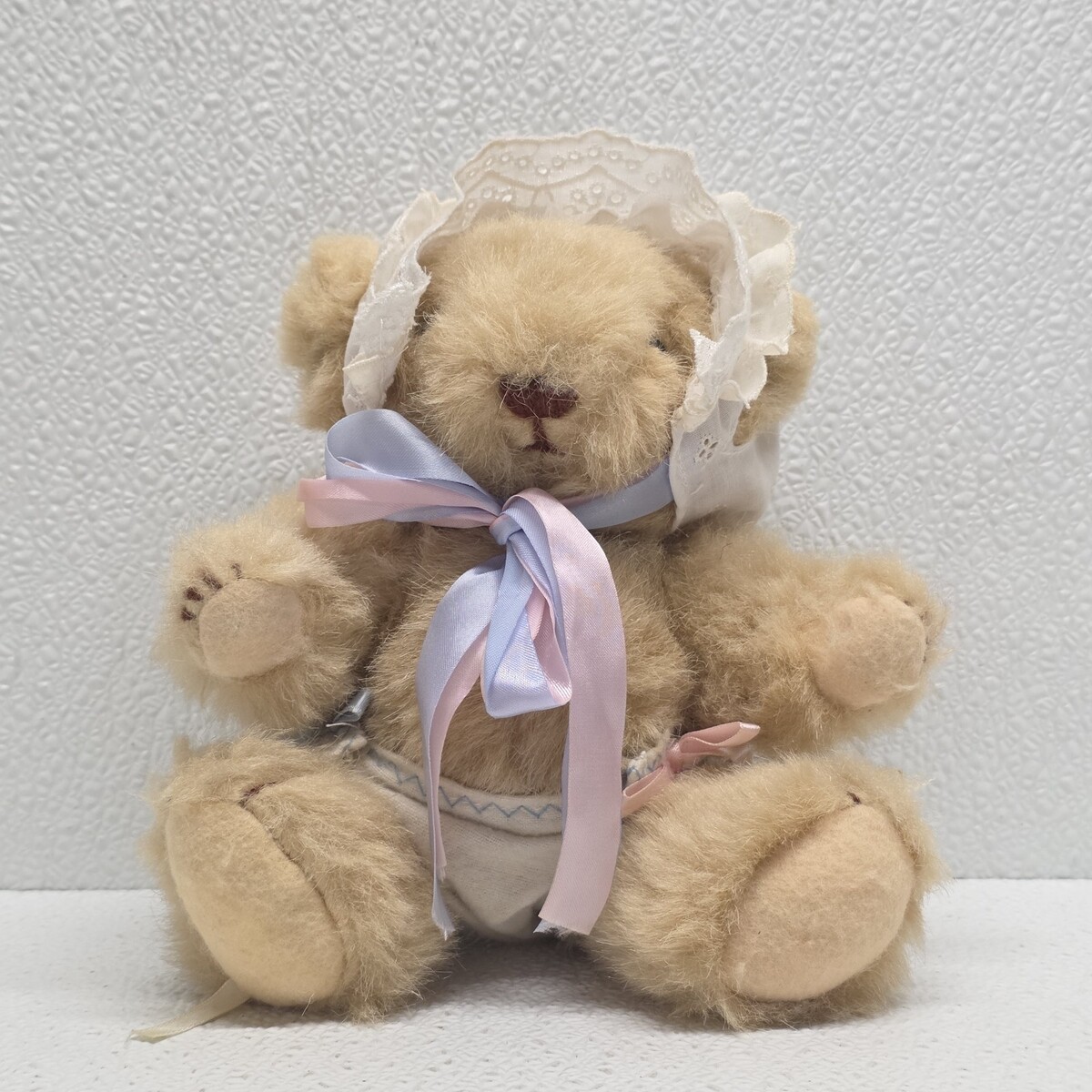 Vintage 1985 Gorham Jointed Baby Teddy Bear in Diaper & Bonnet 8" Plush