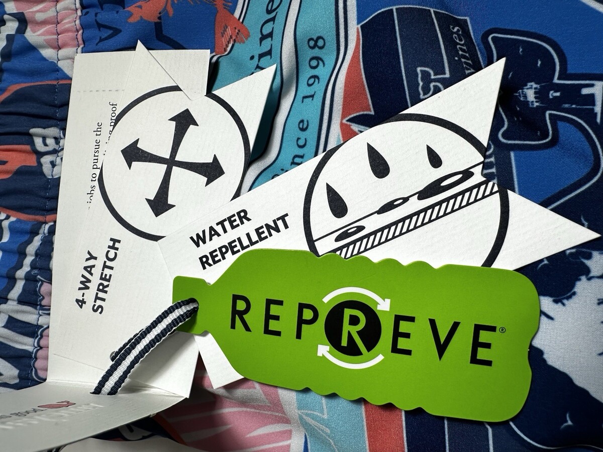 VINEYARD VINES men's Performance swim trunks, 7 in. inseam, mesh lining and drawstring waist. Quick-Dry fabric with 2 side pockets and 1 back flapped pocket. Original Price $98.50.